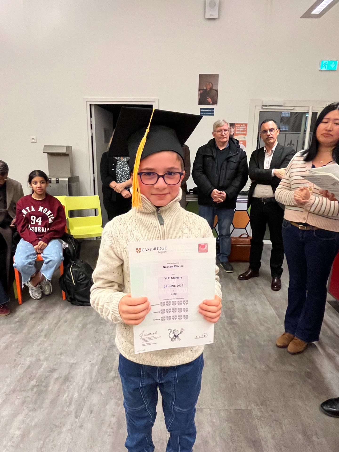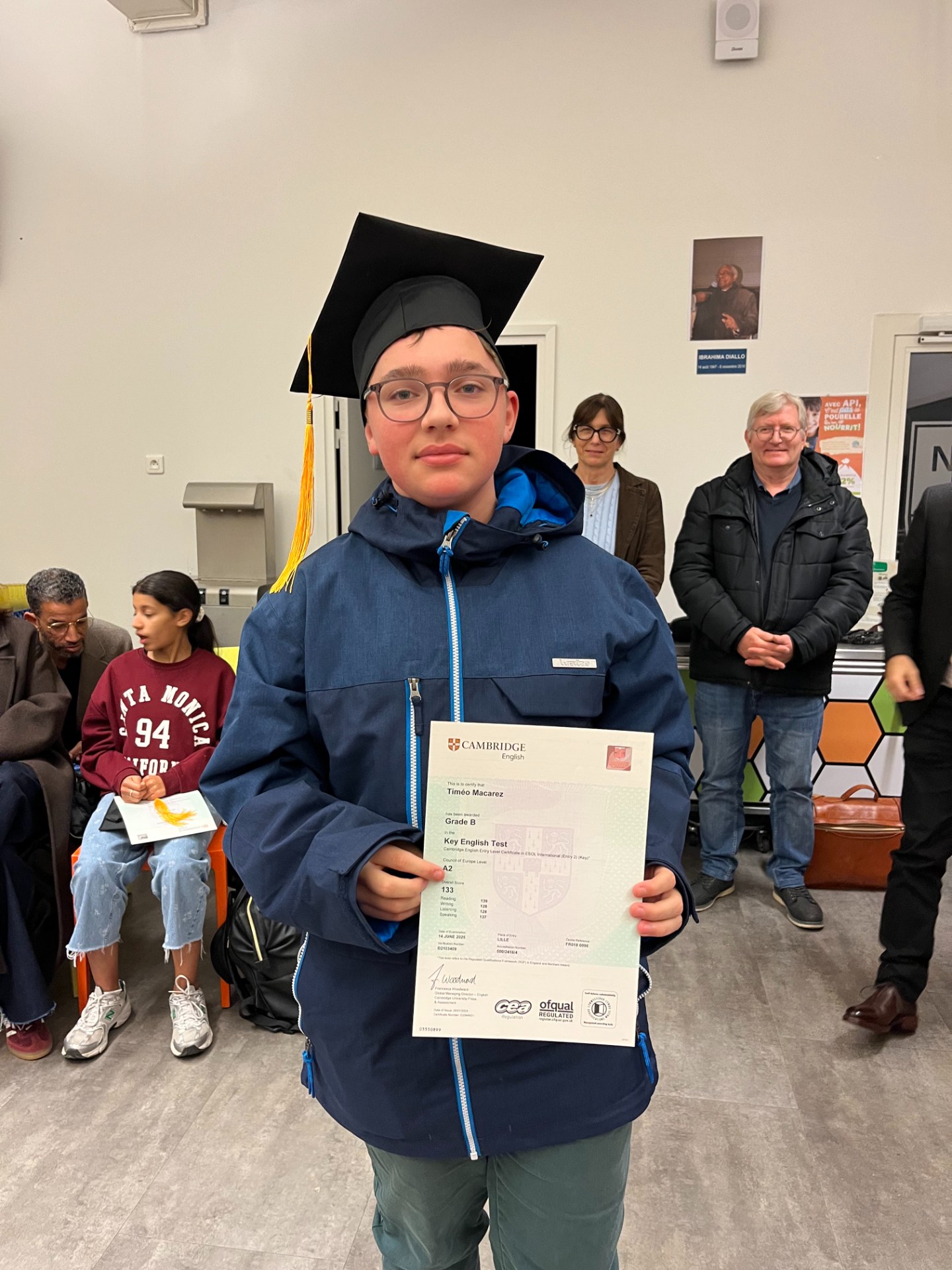 Lundi 17 novembre au soir, l’institution a célébré avec fierté la remise des diplômes des certifications Cambridge English. Vingt élèves ont été récompensés pour leur engagement et leur réussite, du Young Learners – Starters jusqu’au Key English Test (KET), première étape reconnue à l’international.