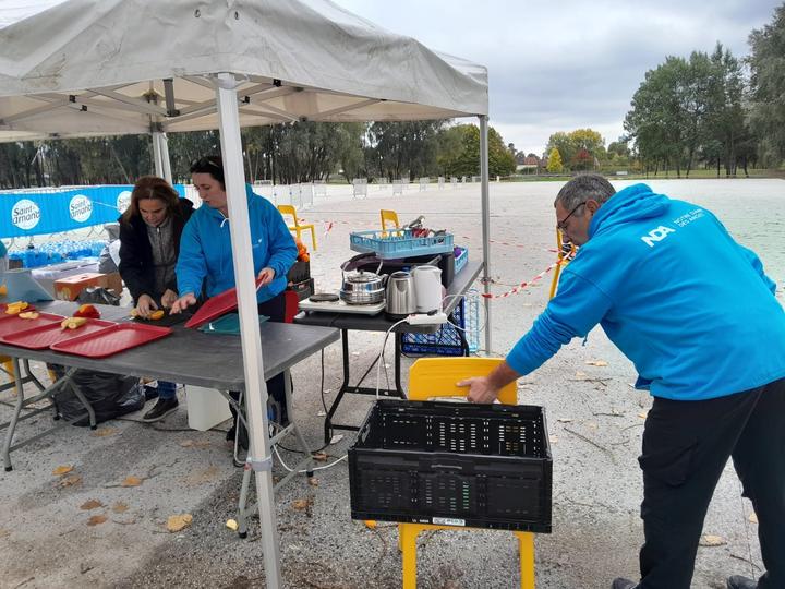 Tout d'abord le 7 octobre pour le cross de l'institution. Les bénévoles de l’APEL ont sollicité leurs partenaires historiques pour organiser un ravitaillement digne d'un marathon : biscuits, fruits frais et de l'eau (servie en éco-cup pour limiter les déchets). Tout ceci a été servi avec le sourire et dans la bonne humeur dès le matin pour nos élèves de primaire et du collège jusqu'en fin d'après-midi pour les élèves du lycée, déguisés pour certains. Afin d'éviter le gaspillage, les fruits restants ont été partagés avec l'APEL de l'école NDA. Les élèves de maternelle et de primaire ont ainsi pu bénéficier de vitamines supplémentaires avant les vacances de la Toussaint.