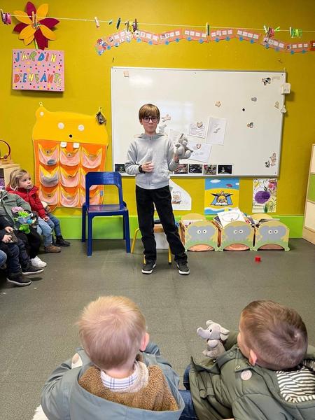 Dans le cadre de leur projet d'arts, les élèves de CM2 ont présenté un objet de leur petite enfance aux enfants du Jardin, créant un beau moment de partage entre petits et grands, riche en émotions et souvenirs