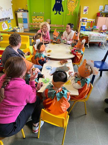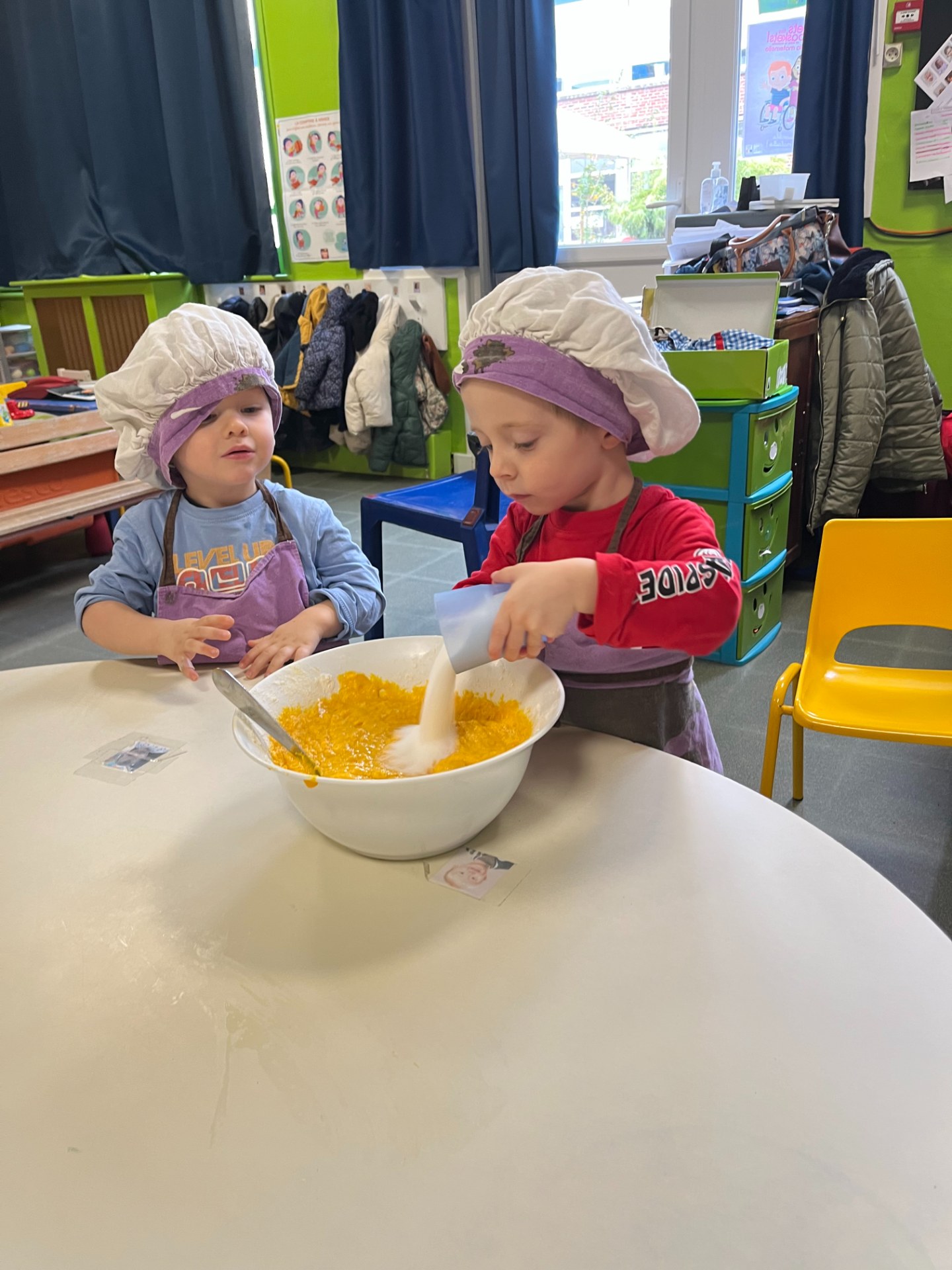 Les enfants tous déguisés en adorables petites citrouilles, ont préparés un délicieux gâteau au potimarron Un vrai régal pour le gouter.