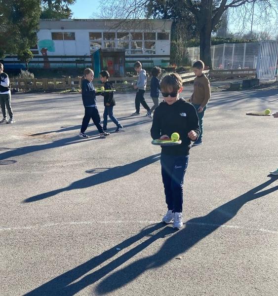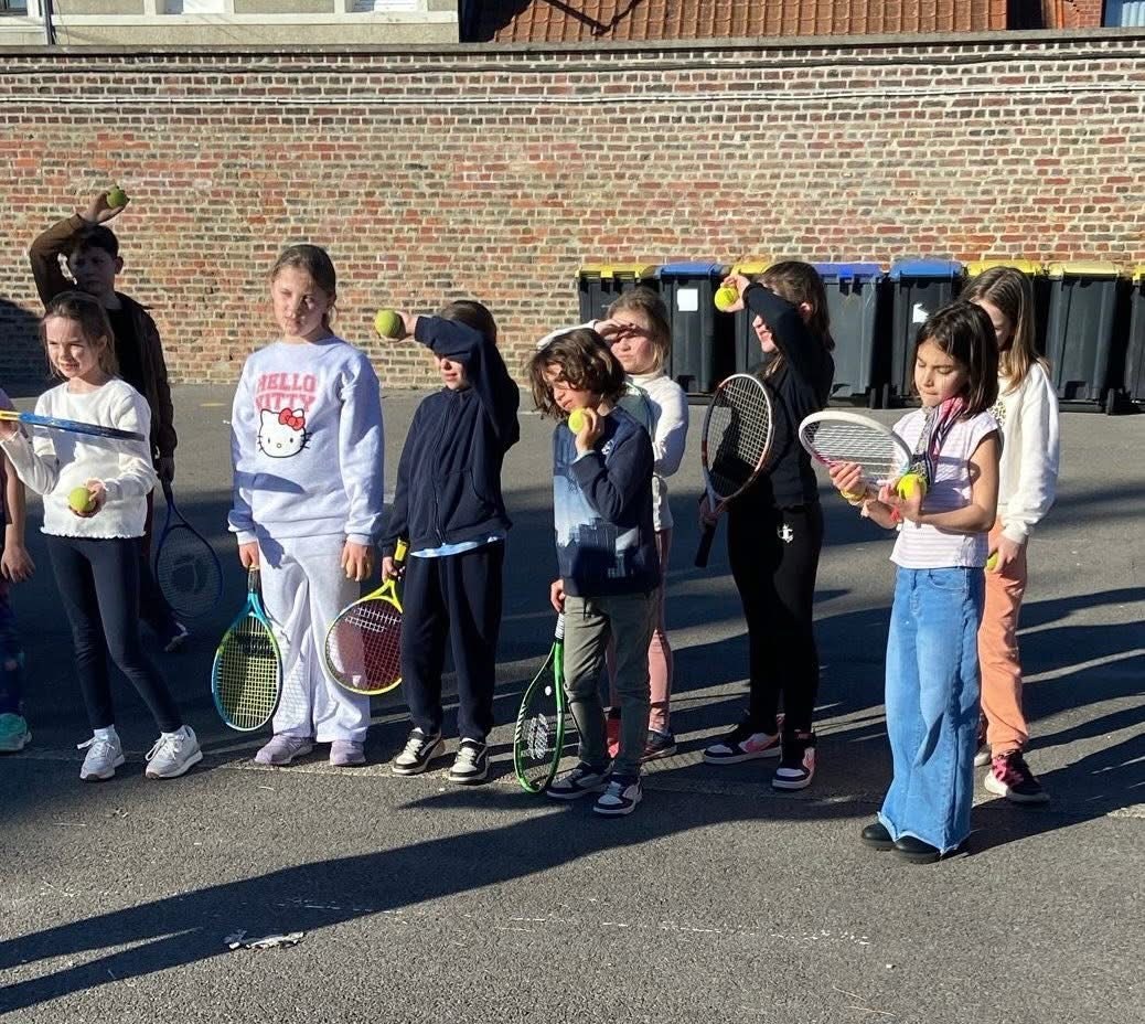 Sous un doux soleil, les CE2 ont démarré un cycle de tennis encadrés par Julien Notredame, moniteur diplômé d'état du ST Amand Tennis. Au programme : agilité, écoute des consignes et concentration pour apprivoiser la petite balle jaune.