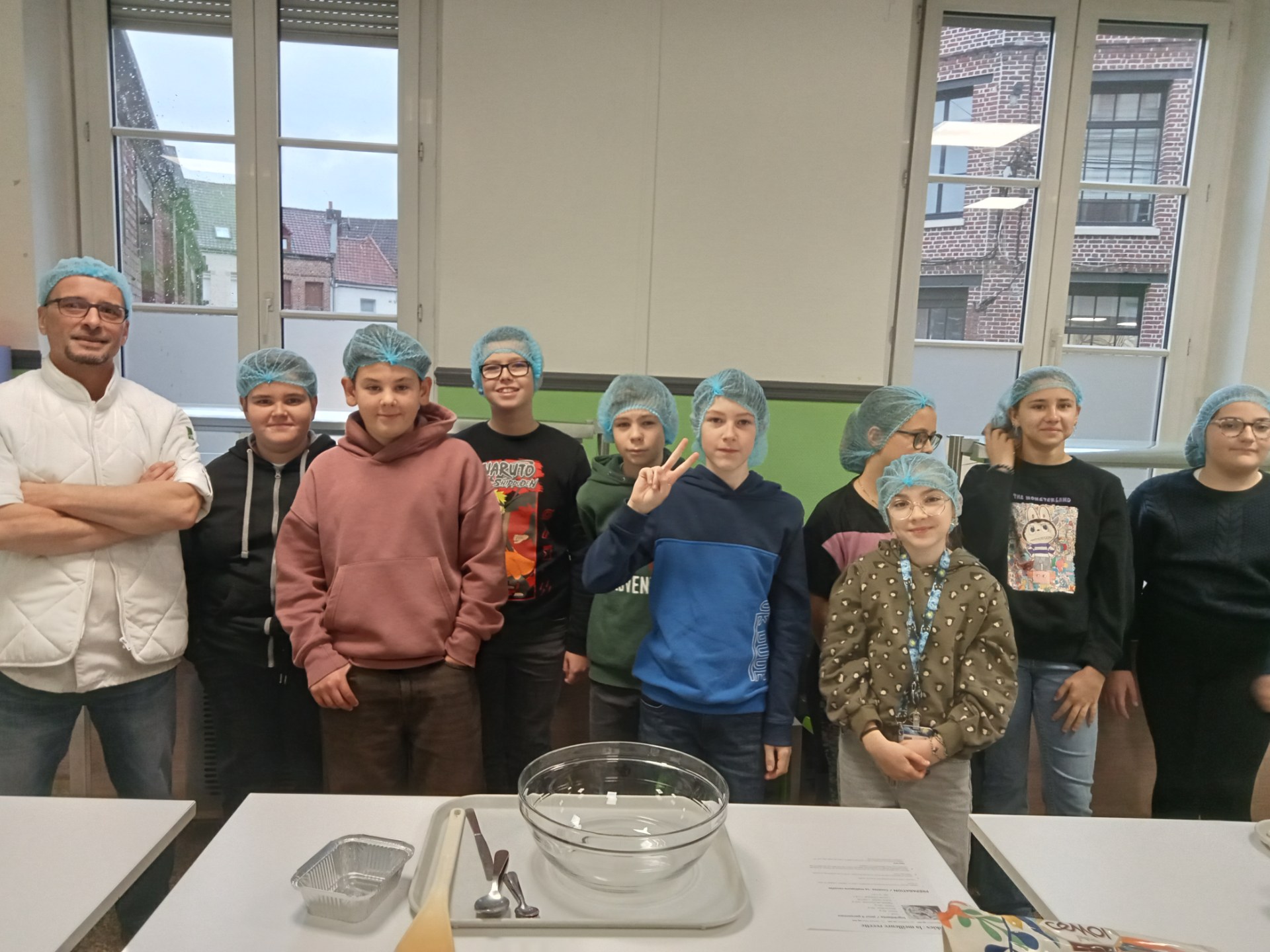 Un atelier cuisine a également été proposé pendant les vacances, animé par Monsieur Didier, chef de cuisine. Ce fut un moment convivial où les élèves ont appris à manipuler des ingrédients, à suivre une recette, à respecter les règles d’hygiène et surtout à partager les tâches. Monsieur Didier a partagé son parcours, ses conseils, et a également proposé la visite des cuisines.