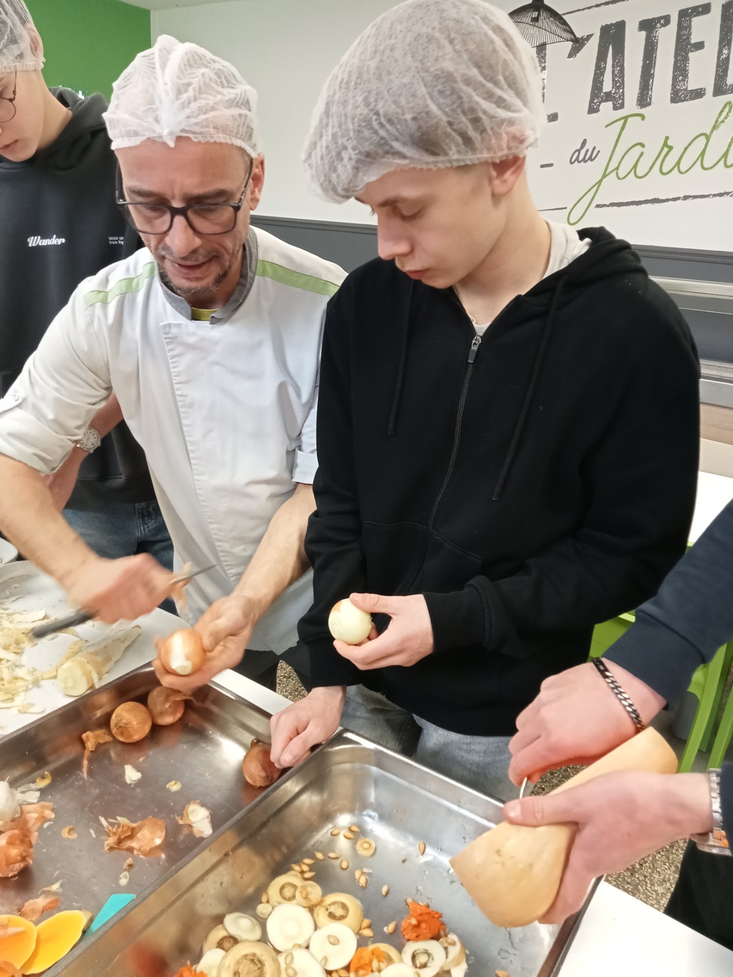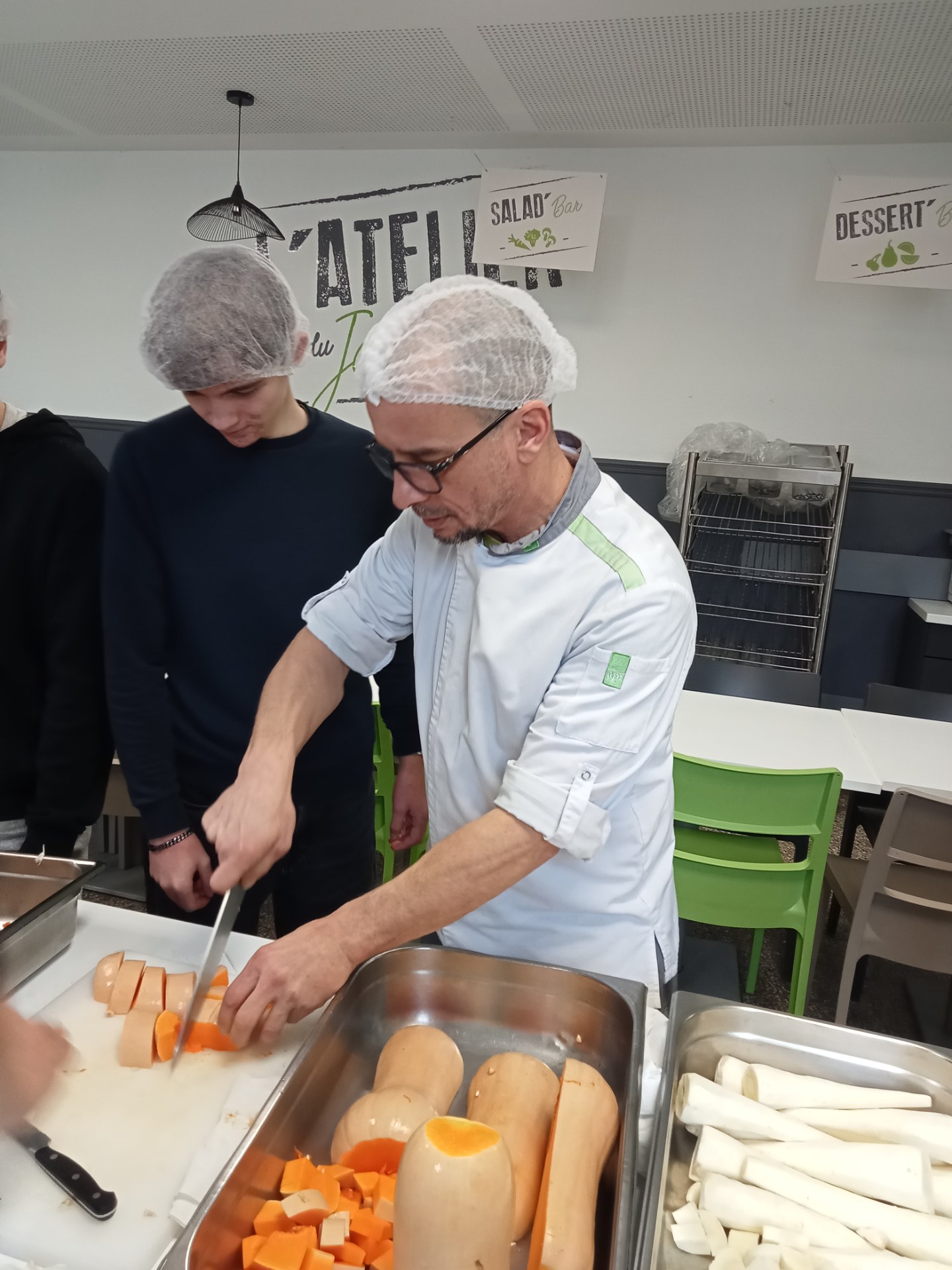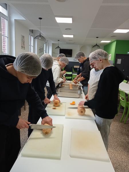 Les élèves de troisième ont participé au deuxième atelier cuisine animé par le chef de restauration API, Monsieur Didier. Ils ont pris part à l’élaboration d’une soupe pour la soupinfos. Au cours de l’atelier, ils ont appris différentes techniques de découpe, découvert de nouveaux légumes et révisé les règles d’hygiène, comme le port de la charlotte et le lavage des mains.Cet atelier a été un véritable moment de partage, de convivialité et de travail en équipe. Les élèves ont pu déguster un bol de soupe avec l’ensemble du personnel et ont été félicités pour leur participation.