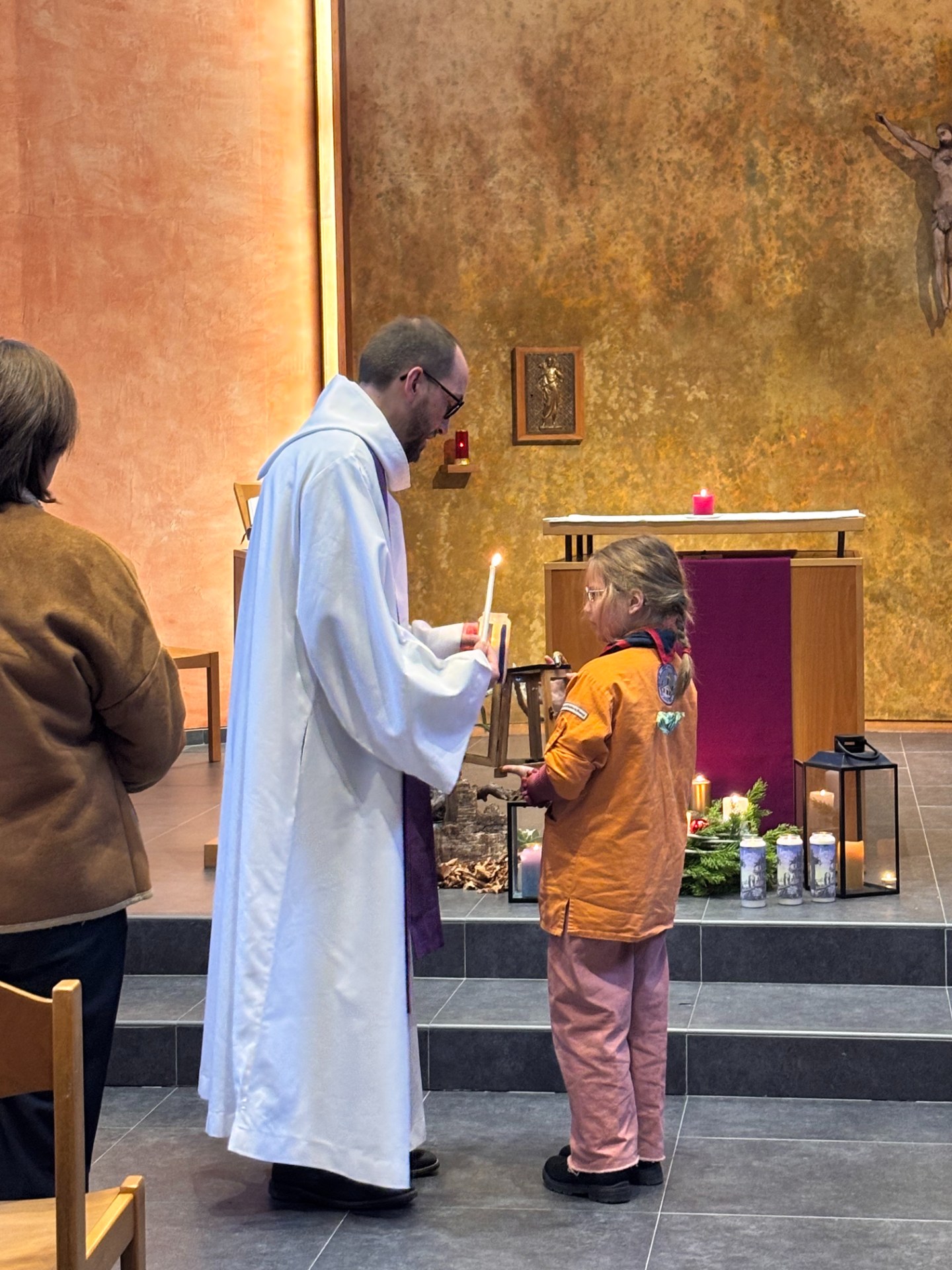 Lors d’une petite cérémonie qui s'est tenue à la maison diocésaine de Raismes, réunissant les scouts, guides et des élèves représentants de chaque établissement, la flamme a été diffusée et partagée. Chaque école est repartie avec sa propre flamme, prête à être portée dans les familles, rappelant ainsi l’importance de la paix en cette période de l’Avent.