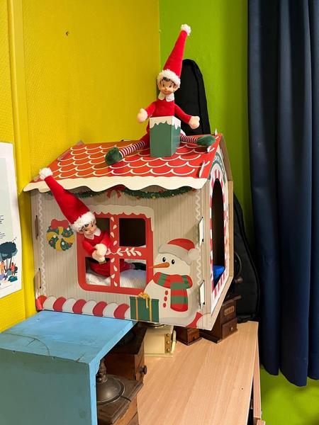 Les enfants ont découvert une cour de récréation aux couleurs de Noël, animée par des lutins venus du Pôle Nord pour apporter rire et magie à l'école. Ils resteront jusqu'au vendredi 12 décembre, jour du marché de Noël à partir de 16h. Merci à l'APEL !