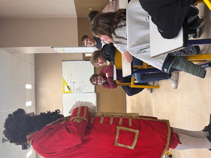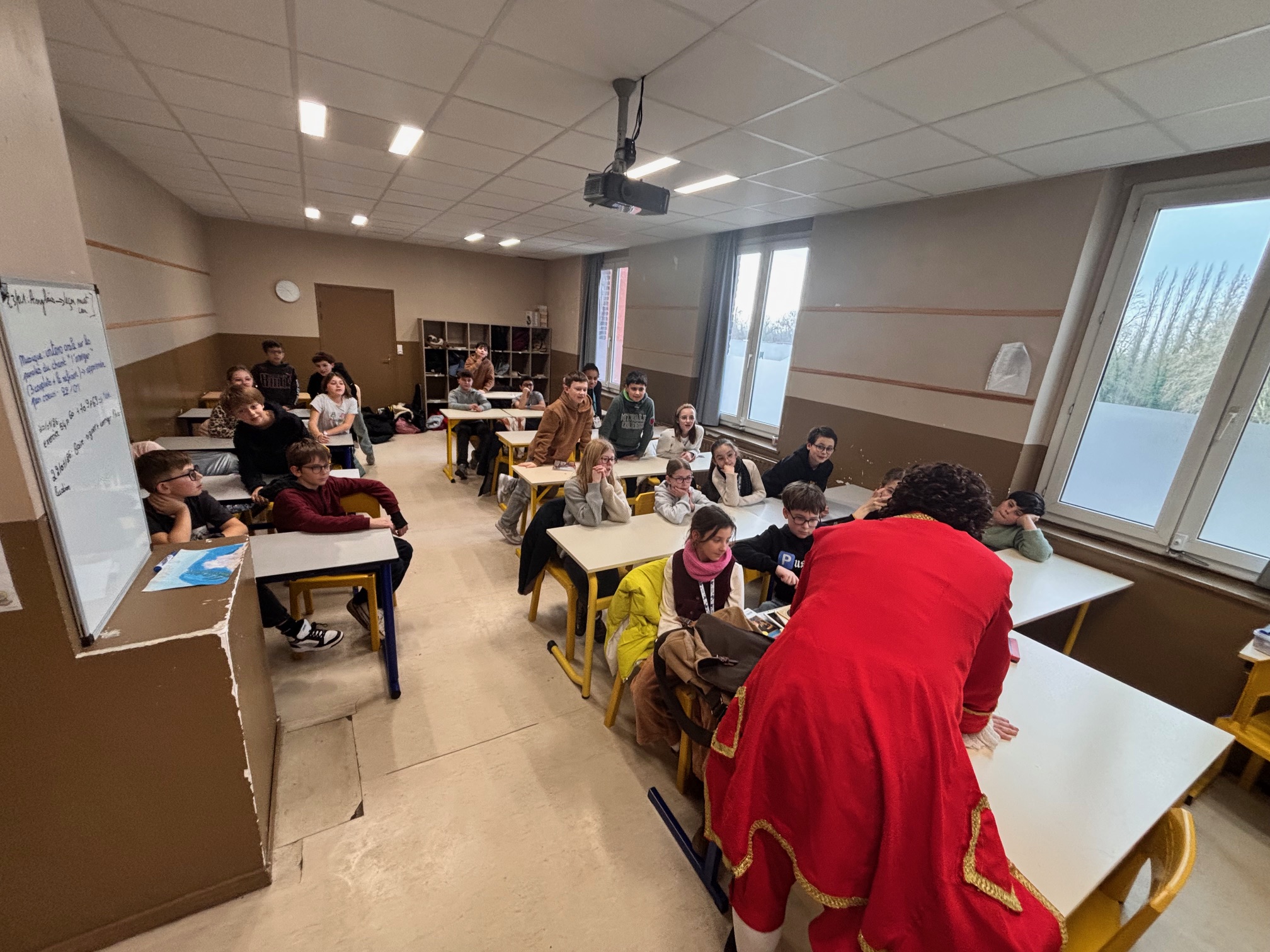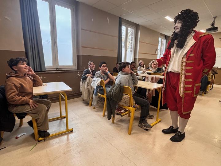 Les 12 et 20 janvier, les élèves des huit classes de 6e de notre établissement ont eu la chance de vivre une rencontre originale et immersive : la venue d’un acteur, M Julien Batten, incarnant Molière lui-même. En costume d’époque, il a transporté les élèves au XVIIᵉ siècle, au cœur de la vie et de l’œuvre du célèbre dramaturge.