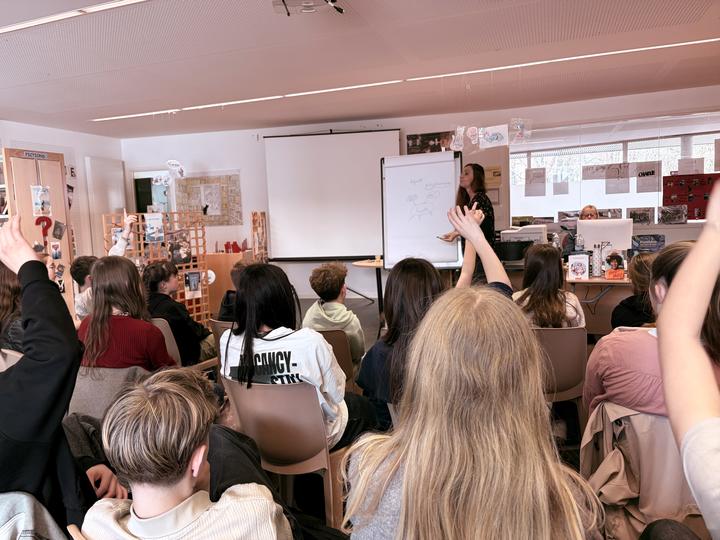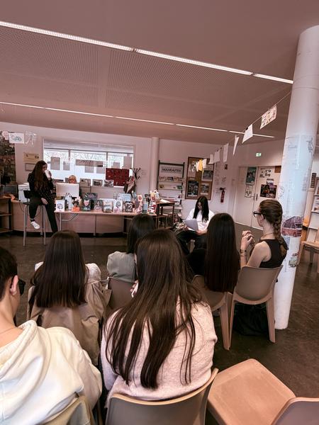 Dans un premier temps, Nancy Guilbert a présenté les coulisses de son métier d’écrivaine. Elle a expliqué le déroulement de ses journées de travail, les différentes étapes de la création d’un livre, ainsi que ses méthodes d’écriture. Elle a notamment partagé des conseils précieux sur la manière de construire une histoire, de développer des personnages crédibles et de travailler les descriptions. Les élèves ont également pu découvrir ses carnets personnels, véritables outils de travail où se mêlent esquisses, idées, notes et débuts de récits, servant tantôt de brouillons, tantôt de supports d’inspiration.