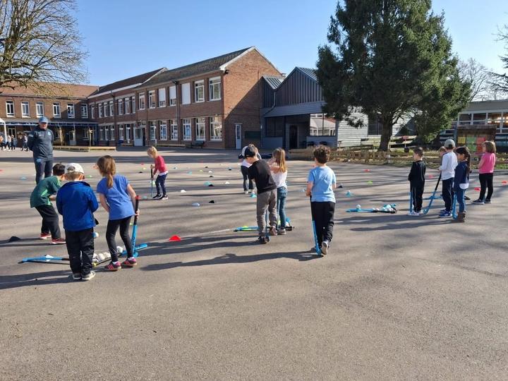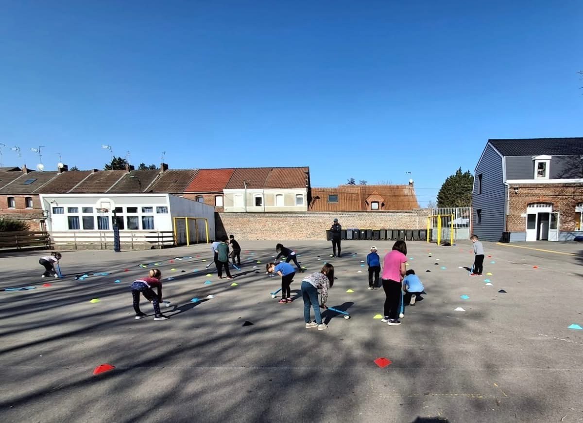 Les CP ont commencé un cycle de Hockey avec Killian du Comité Nord Hockey. Entre écoute des consignes et parcours d'agilité, ils apprennent à manier la crosse et la balle avec énergie. Bravo pour ces premiers pas !