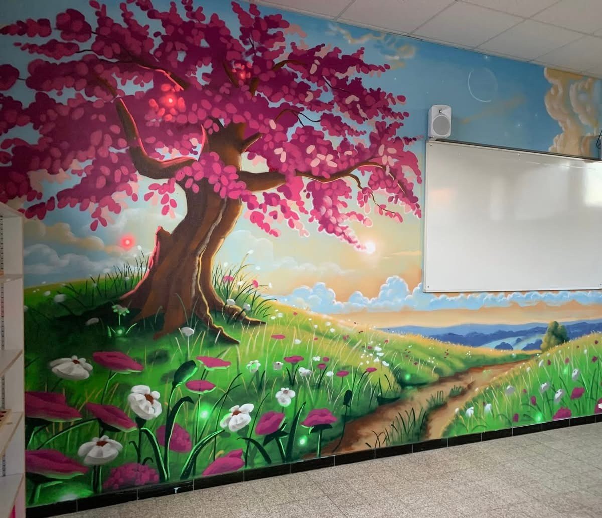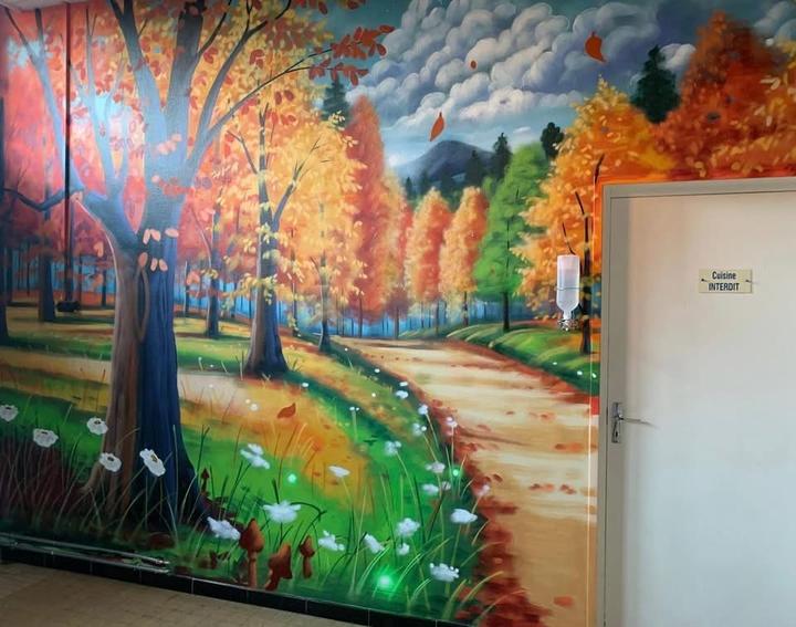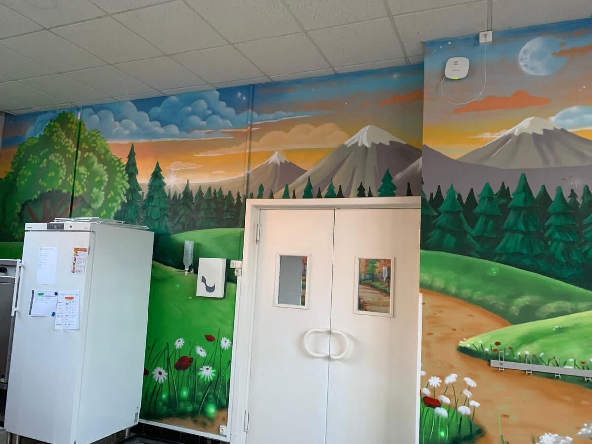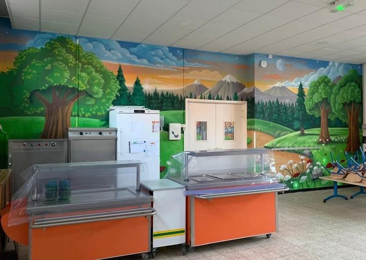 Des fresques XXL réalisées par Thom'art Déco ont transformé la cantine en un espace joyeux et coloré, pour le plus grand plaisir des élèves.
