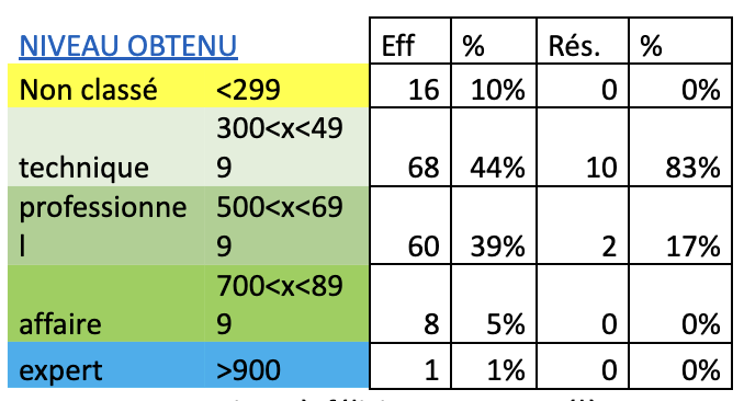 Voici une rapide statistique des résultats obtenus par nos élèves :