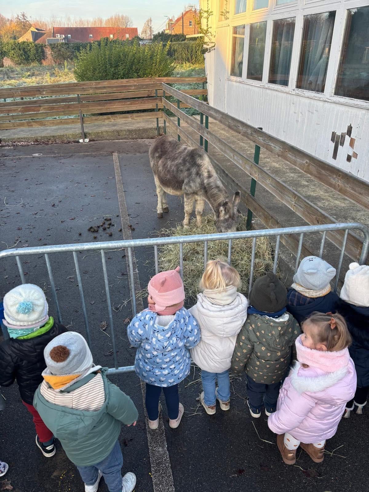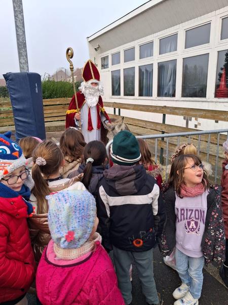 Ce matin, les élèves ont rencontré Saint Nicolas et son âne. Ils étaient ravis et ont reçu des friandises. En retour, ils lui ont offert des cadeaux, récité des comptines et chanté des chansons pour le remercier.