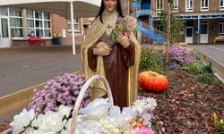 Aujourd'hui, nous fêtons Ste Thérèse de Lisieux et nous présentons la statuette de Ste Thérèse installée tout récemment dans la cour.