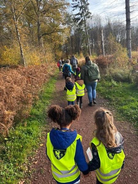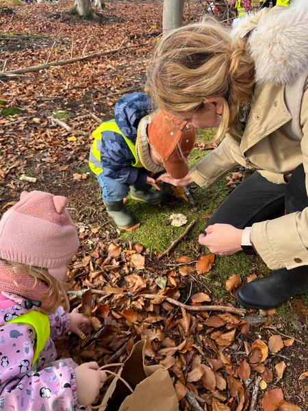 Le Jardin d'Enfants et les maternelles ont exploré la forêt, observé la nature, ramassé des trésors et même rencontré une grenouille. Une matinée pleine de découverte !